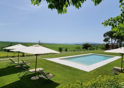 De gasten hebben toegang tot het zwembad gelegen op een natuurlijk terras met een panoramisch uitzicht op de Crete Senesi.