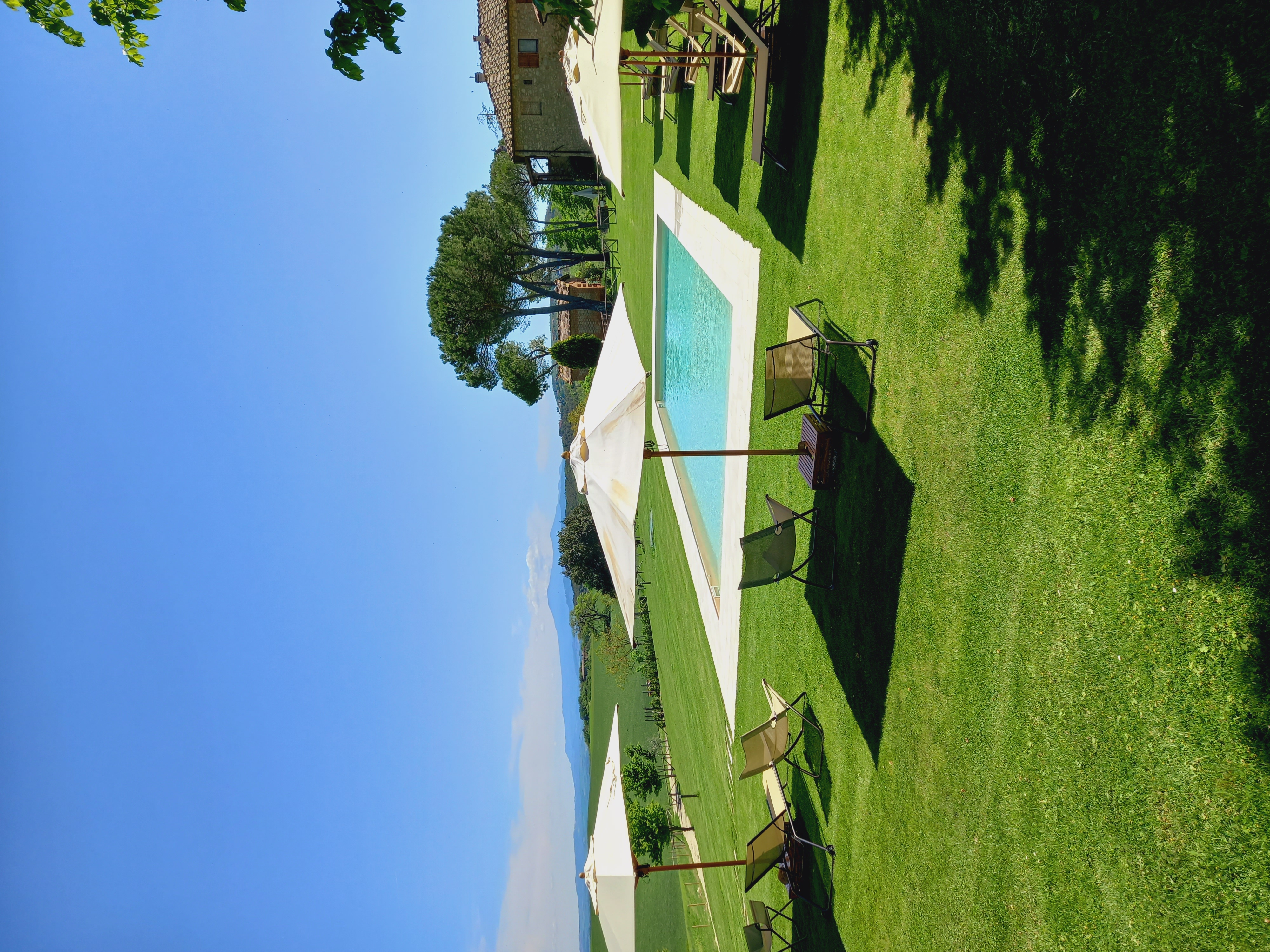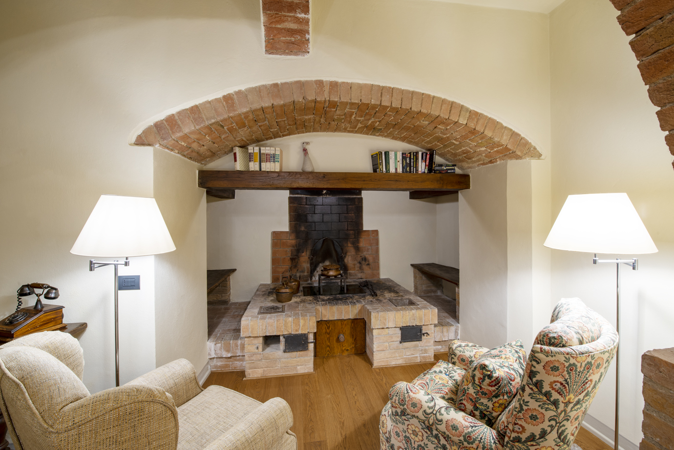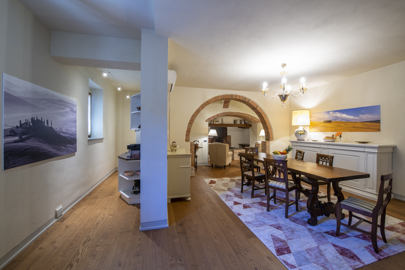Met een oppervlakte van circa 85 vierkante meter is het gelegen op de begane grond en is verdeeld over de drie zijden van de boerderij. In het noorden kunt u genieten van het uitzicht op de tuin, inclusief het zwembad, in het oosten van het meer en de Crete Senesi tot aan de heuvels van de Chianti.